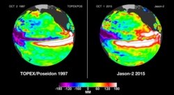 በኤል ኒኞ (El Nino)ምክንያት የተከሰተውን የፓሲፊክ ውቅያኖስን ሙቀት ለውጥ ናሳ ሳተላይቶች (NASA satellites) ከእአአ 1997 እስከ እአአ 2015