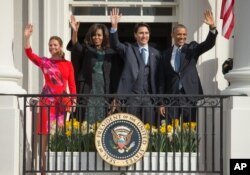 የዩናትድ ስቴትስ ፕሬዚዳንት ባራክ ኦባማ ዛሬ በዋይት ሃውስ ቤተ ማንግሥት በቅቡ አዲስ የተመረጡትን የካናዳ ጠቅላይ ሚንስትር ጁስትቲን ትረዱን ተቀብለው አነጋግረዋል።